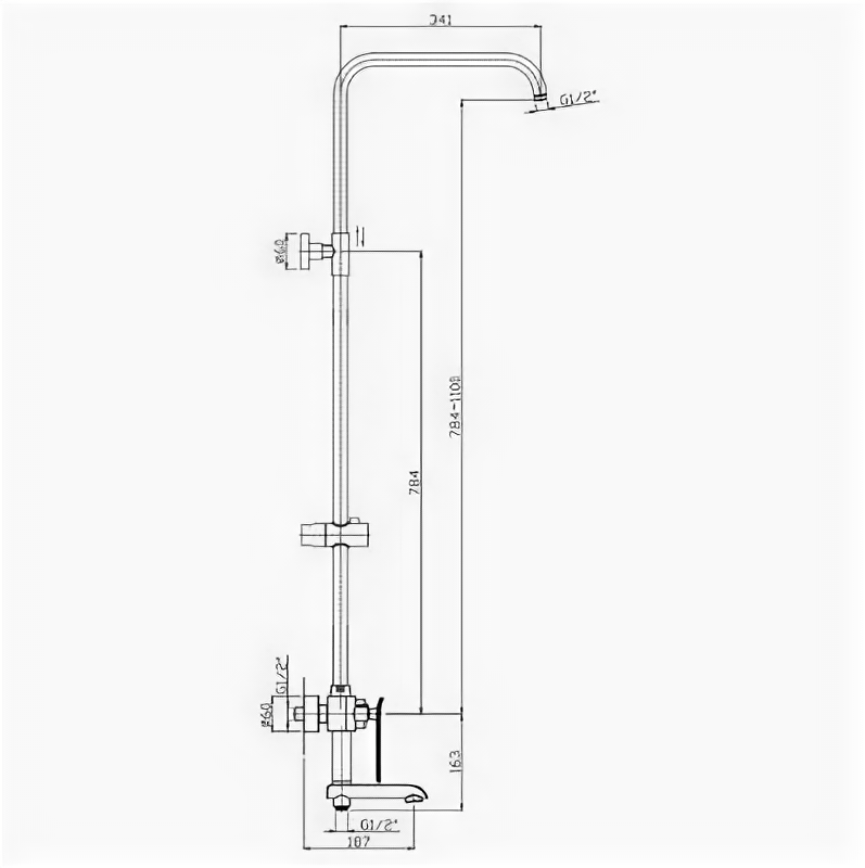 | Дополнительная информация | высота стойки для душа: 1100 мм; диаметр душевой лейки: 120 мм; диаметр верхнего душа: 200 мм |