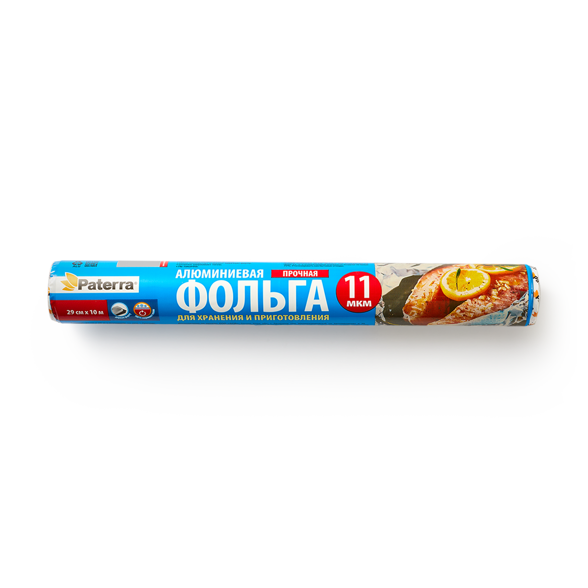Фольга пищевая алюминиевая PATERRA, 29см х 10м,11 мкм, (209-010)