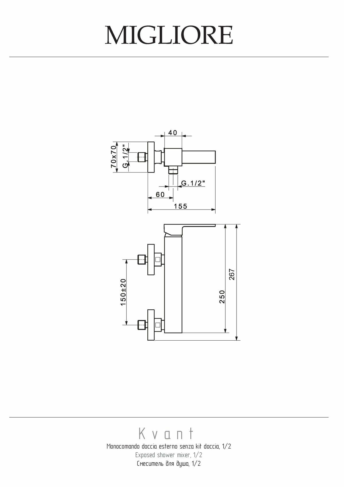 Смеситель Migliore Kvant ML.KVT-2739.CR для душа