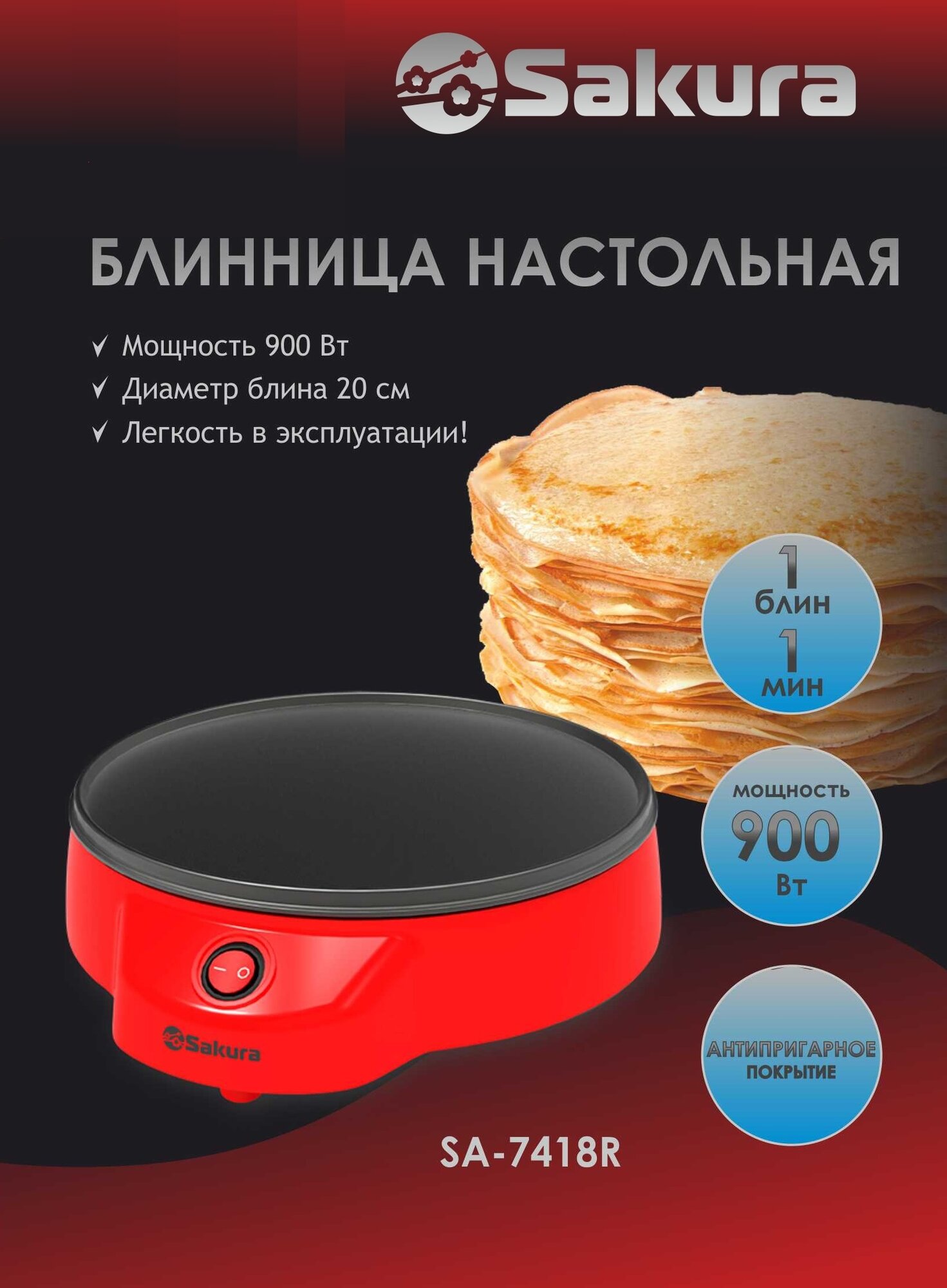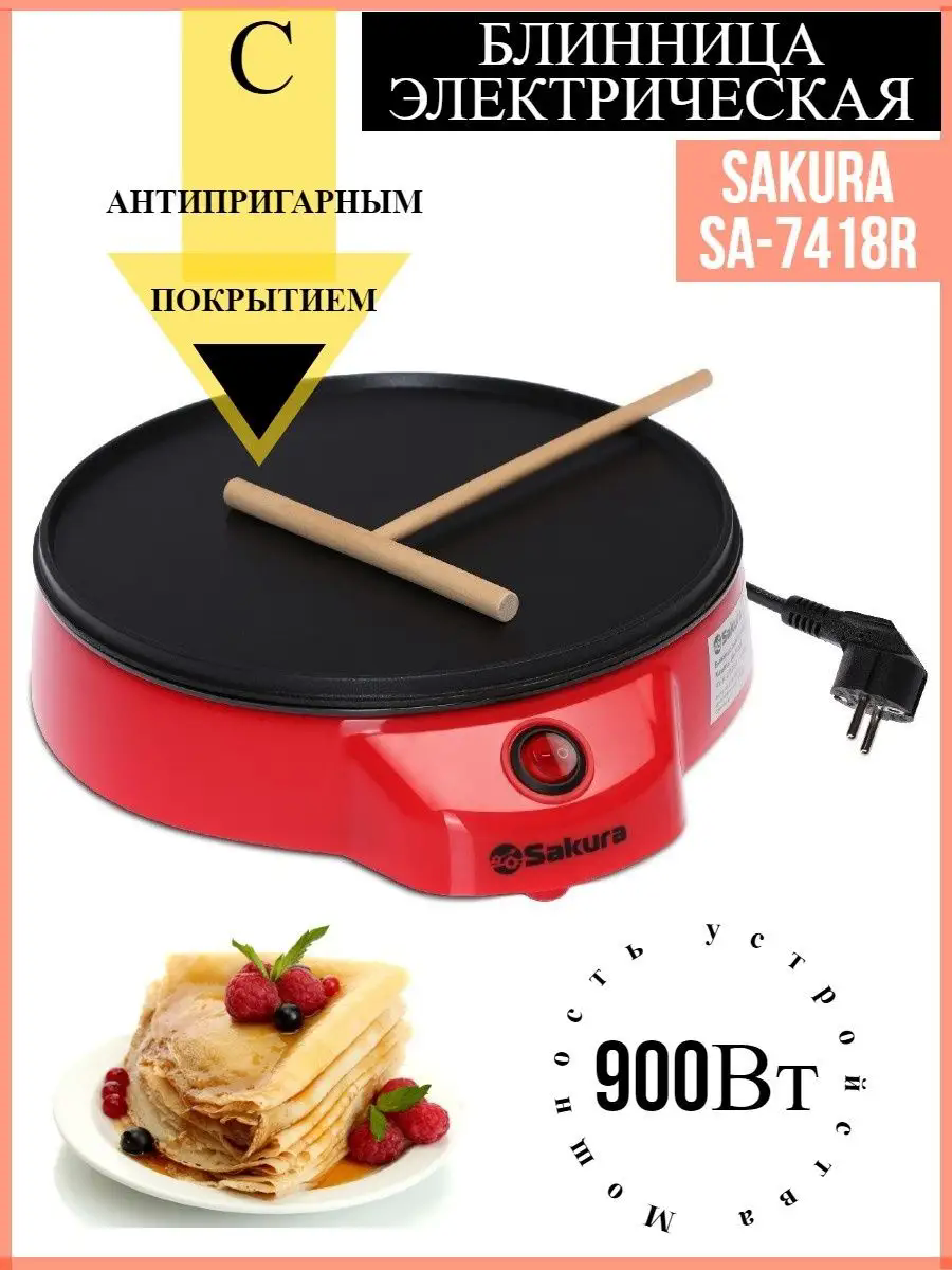 Блинница электр Sakura SA-7418R 900Вт красн интересное: