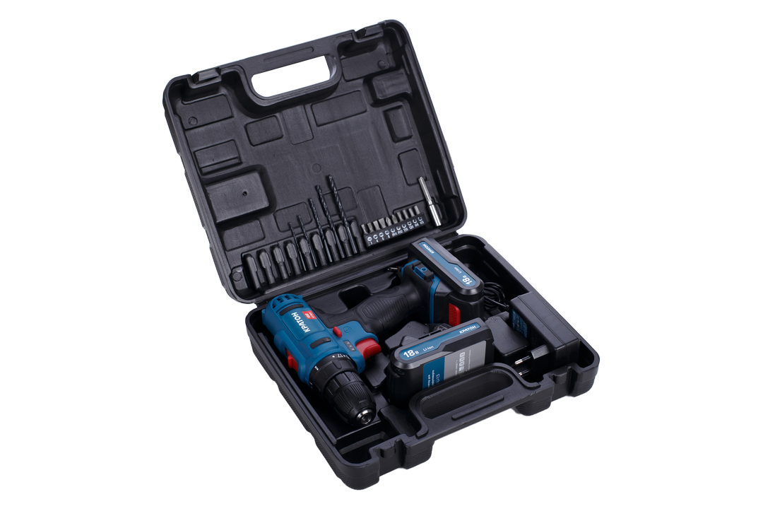 Дрель-шуруповерт аккумуляторная Кратон CD-18-Li-1,5 (18 В, 1,5 А·ч; 2 АКБ + кейс, расширенная комплектация)