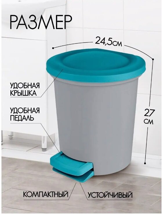Контейнер бак для мусора с педалью 6 л декор ведра Марокко Spin&Clean 24,5х24,5х27