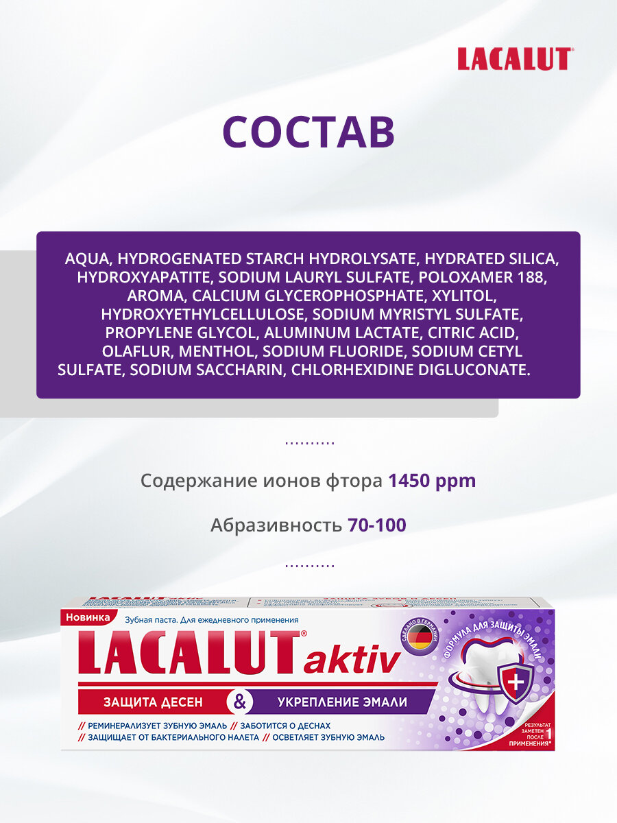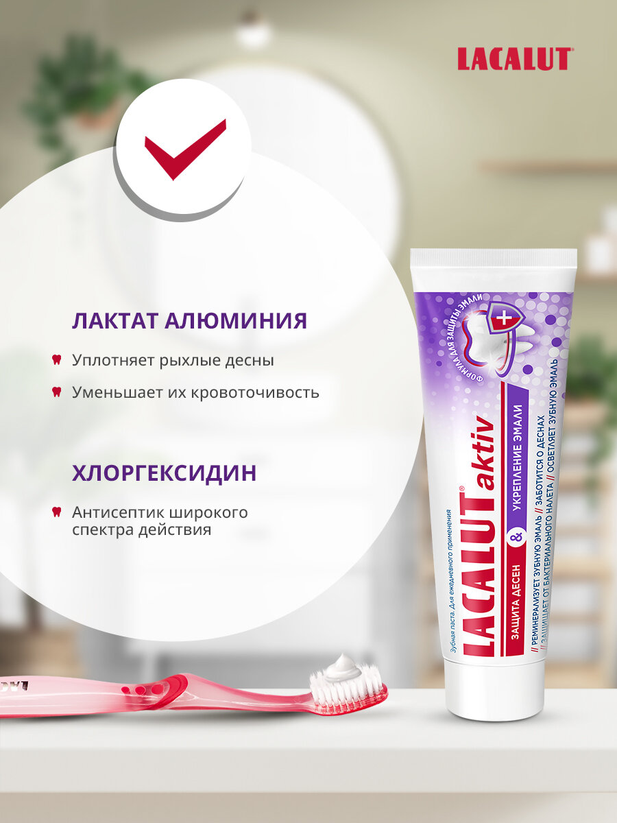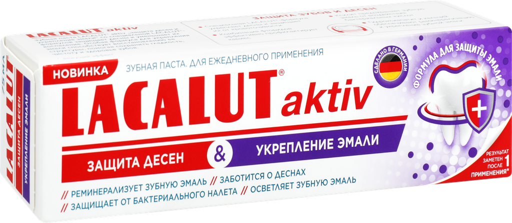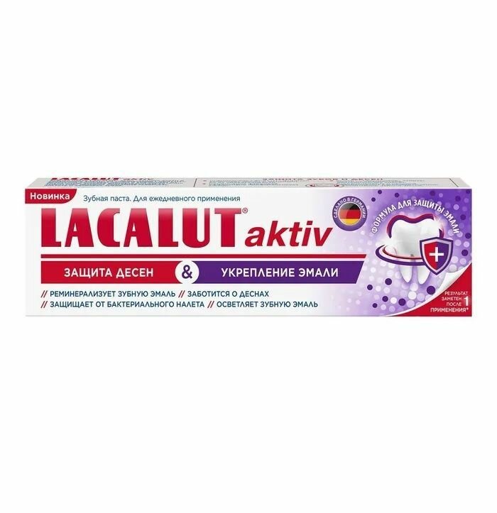 Lacalut aktiv защита десен и укрепление эмали зубная паста, 75 мл