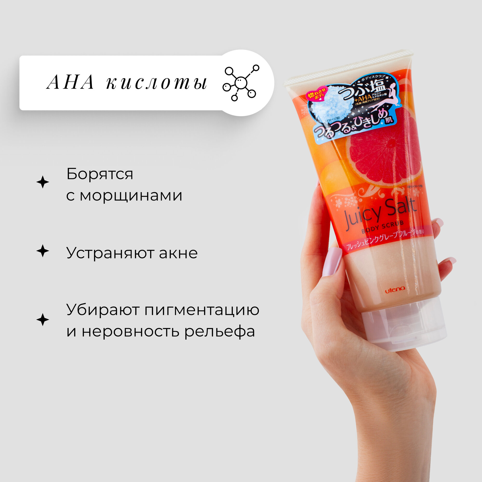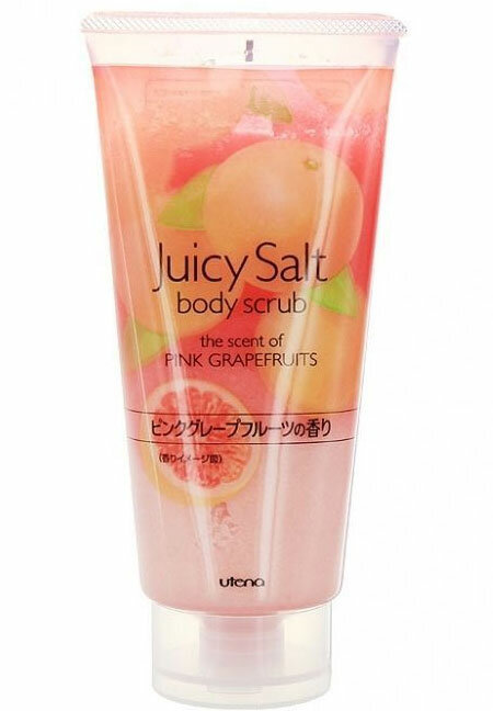 Скраб для тела на основе соли увлажняющий Япония, Utena Juicy Salt 300 мл от целлюлита и отеков с ароматом розового грейпфрута