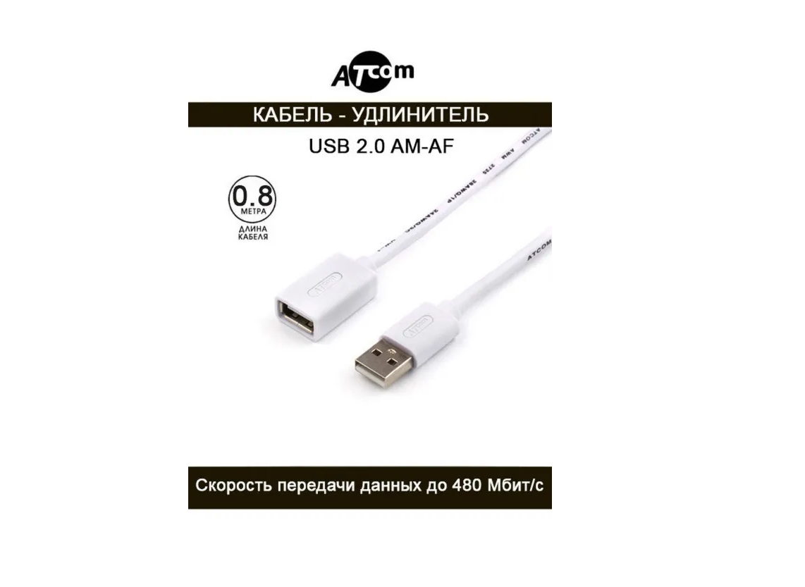 Удлинитель Atcom AT3788 USB (Am <=> Af), 0.8 m, белый