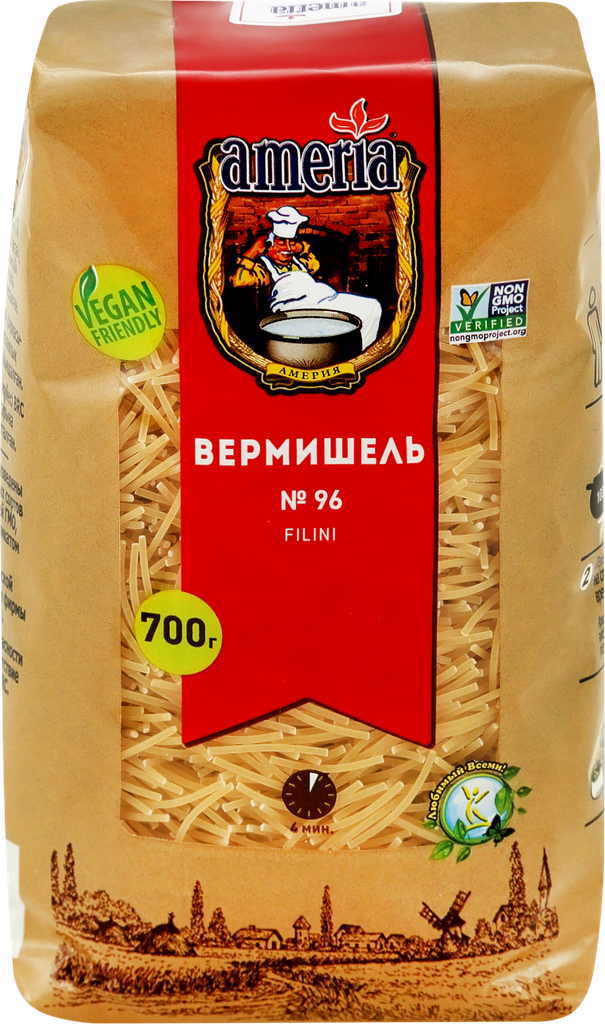 Макароны AMERIA Вермишель №96, группа В высший сорт, 700г интересное: