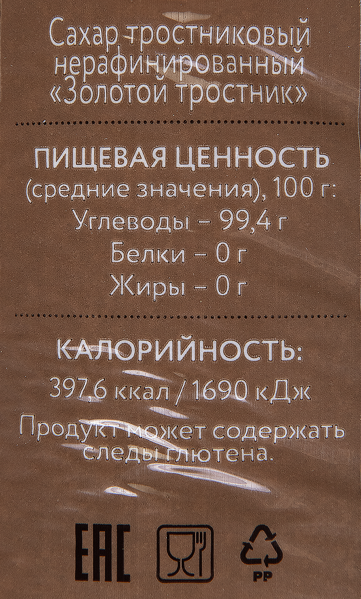 Сахар Золотой тросниктростниковый нерафинированный 900 г