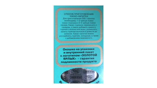 Ниже Вы можете прочитать отзывы на Какао Золотой ярлык 100г, ознакомится с подробными характеристиками, посмотреть интересные обзоры и фотографии на Какао Золотой ярлык 100г.