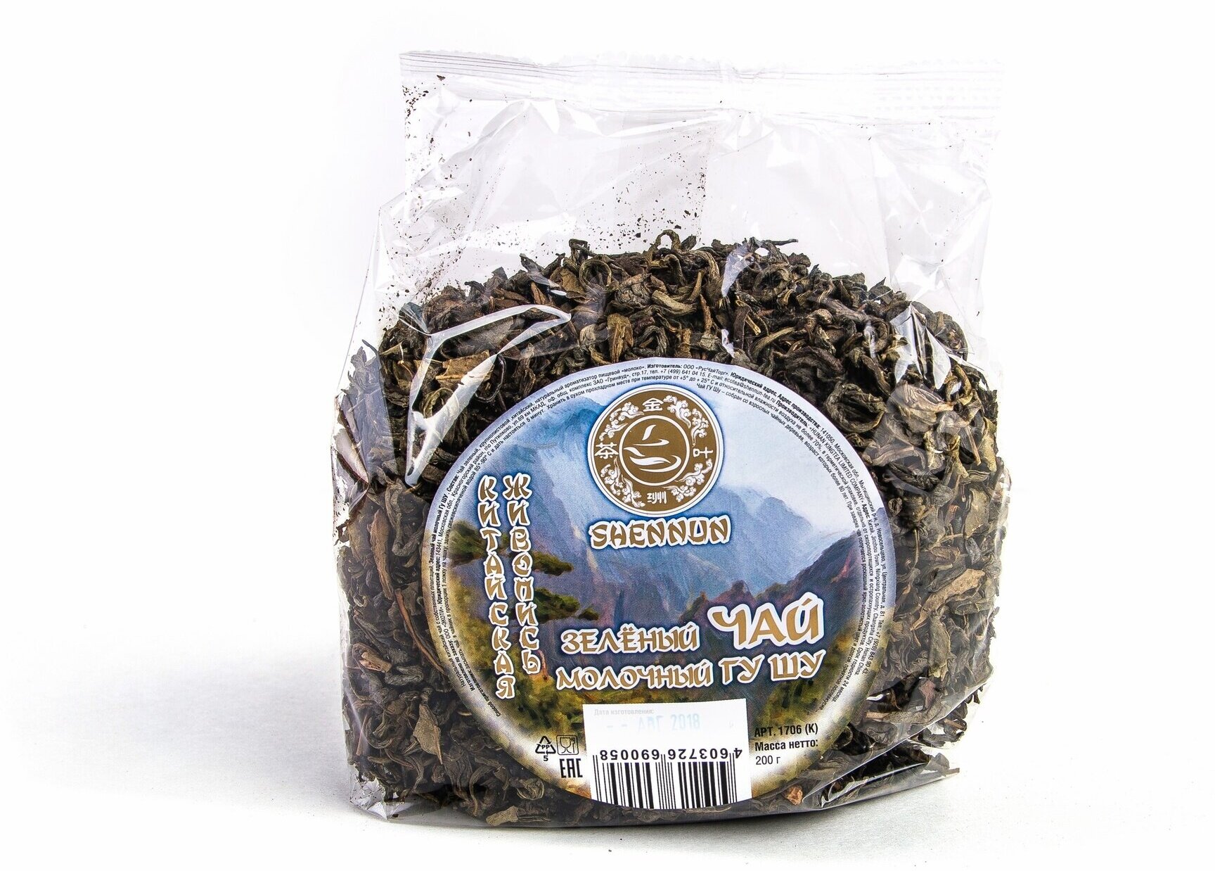 Зеленый китайский крупнолистовой чай в прозрачном пакете SHENNUN, молочный ГУ ШУ, 200 г./В упаковке шт: 1