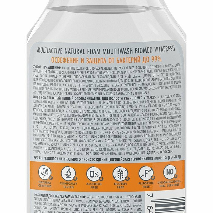Biomed VITAFRESH Ополаскиватель для полости рта с эфирными маслами цитрусов, 250 мл