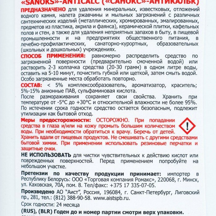 Аист Средство чистящее для сантехники "Санокс"- экстра, 750 гр