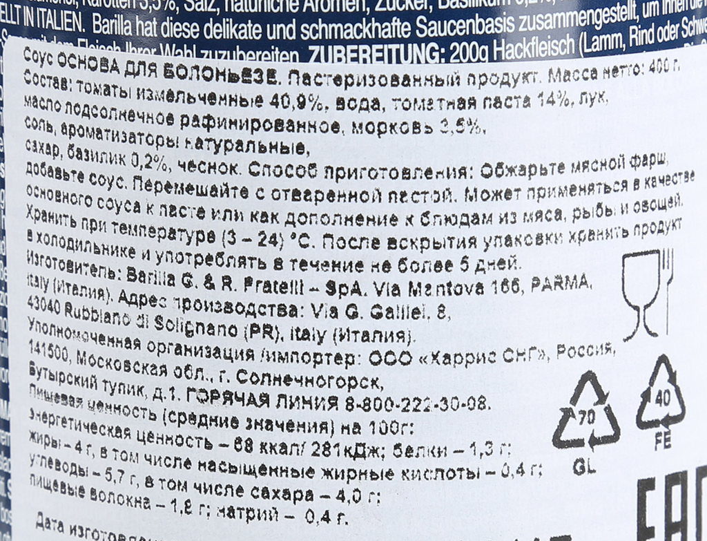 Ниже Вы можете прочитать отзывы на Соус Barilla Основа для болоньезе 400г х1шт, ознакомится с подробными характеристиками, посмотреть интересные обзоры и фотографии на Соус Barilla Основа для болоньезе 400г х1шт.