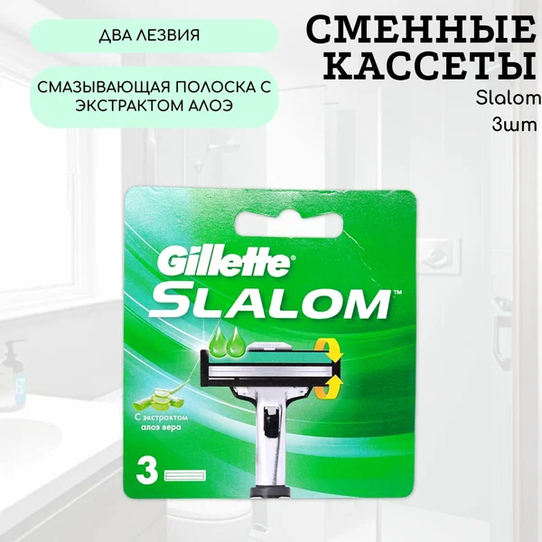 Сменные Кассеты Для Мужской Бритвы Gillette Slalom, с 2 лезвиями, 3 шт