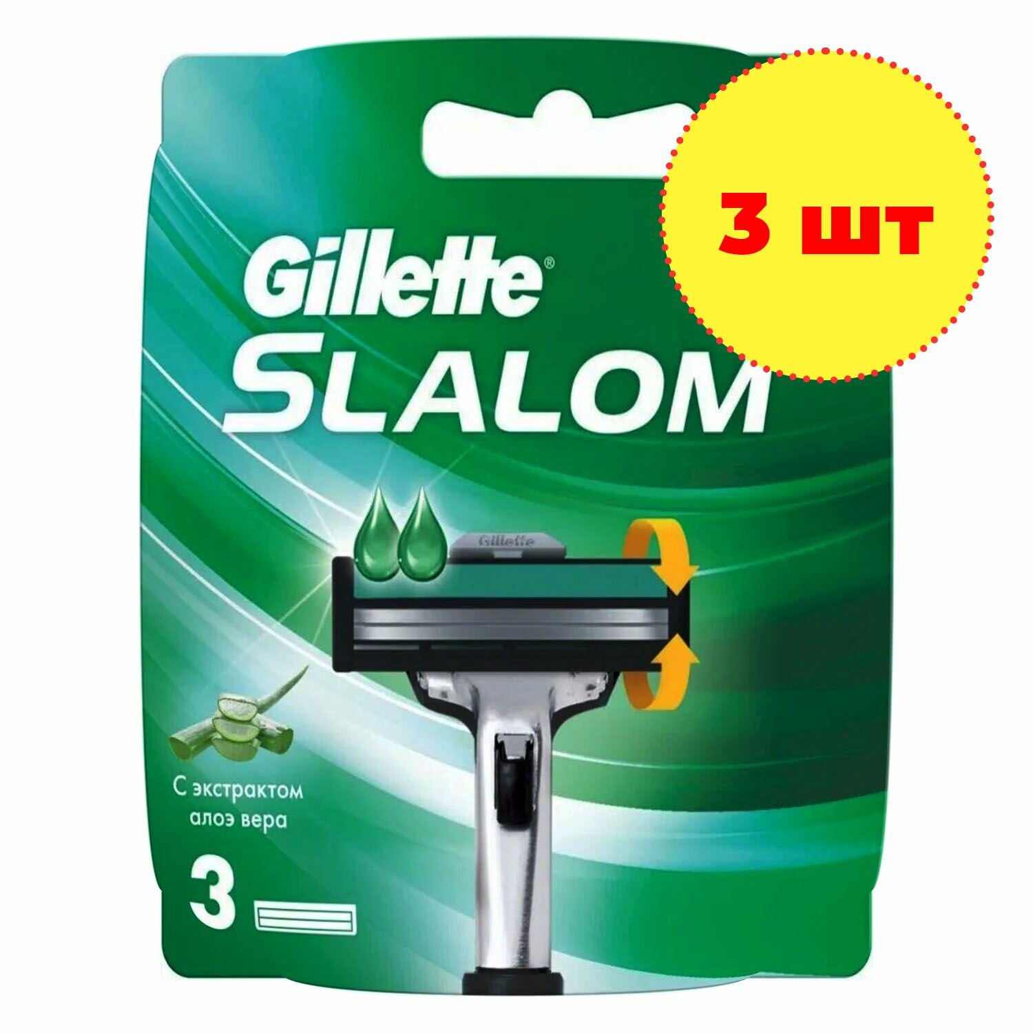 Кассеты для станка Gillette, Slalom Алоэ, 3 шт.