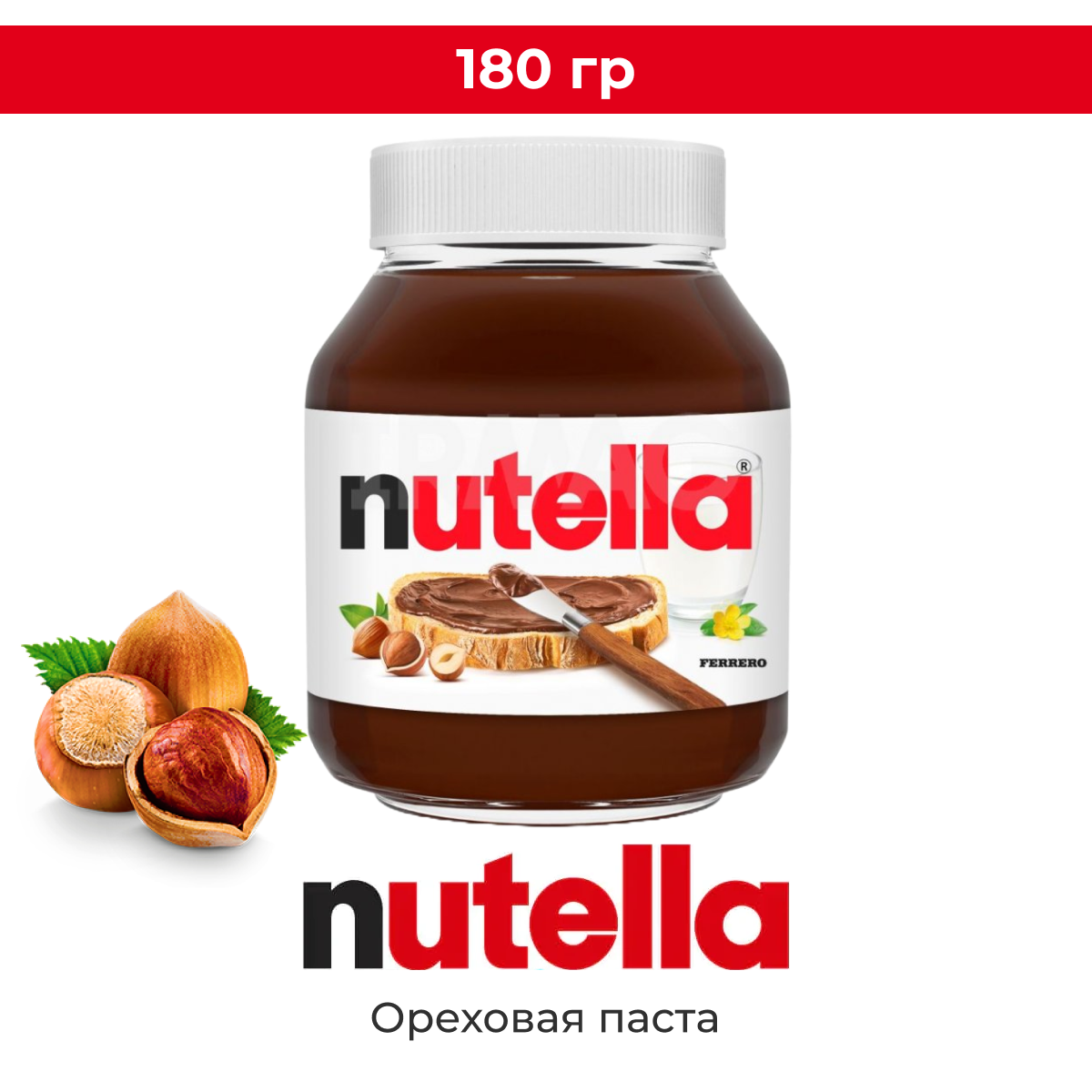 Паста ореховая с добавлением какао Nutella, 180 г, стеклянная банка, 8 шт.