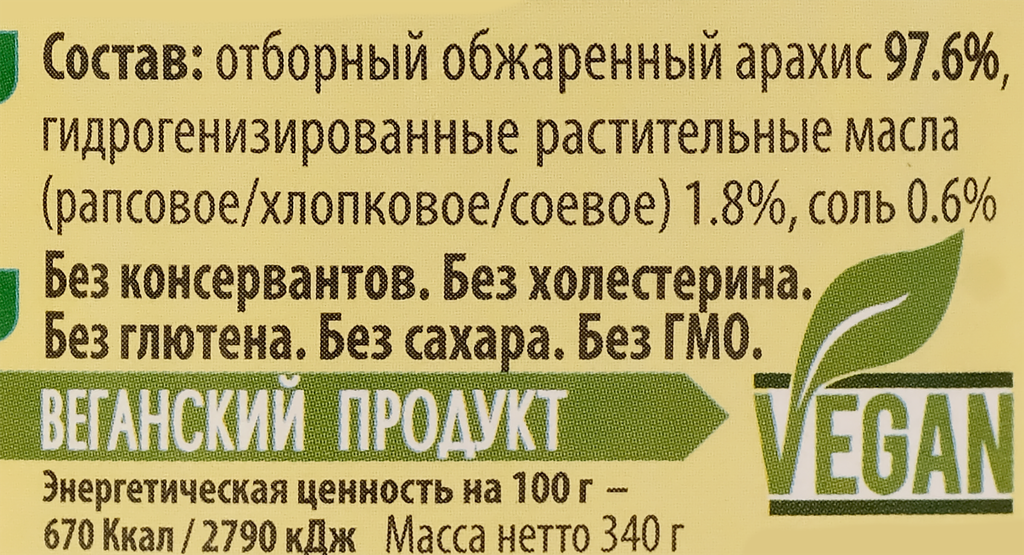 Паста арахисовая без сахара, 340 г