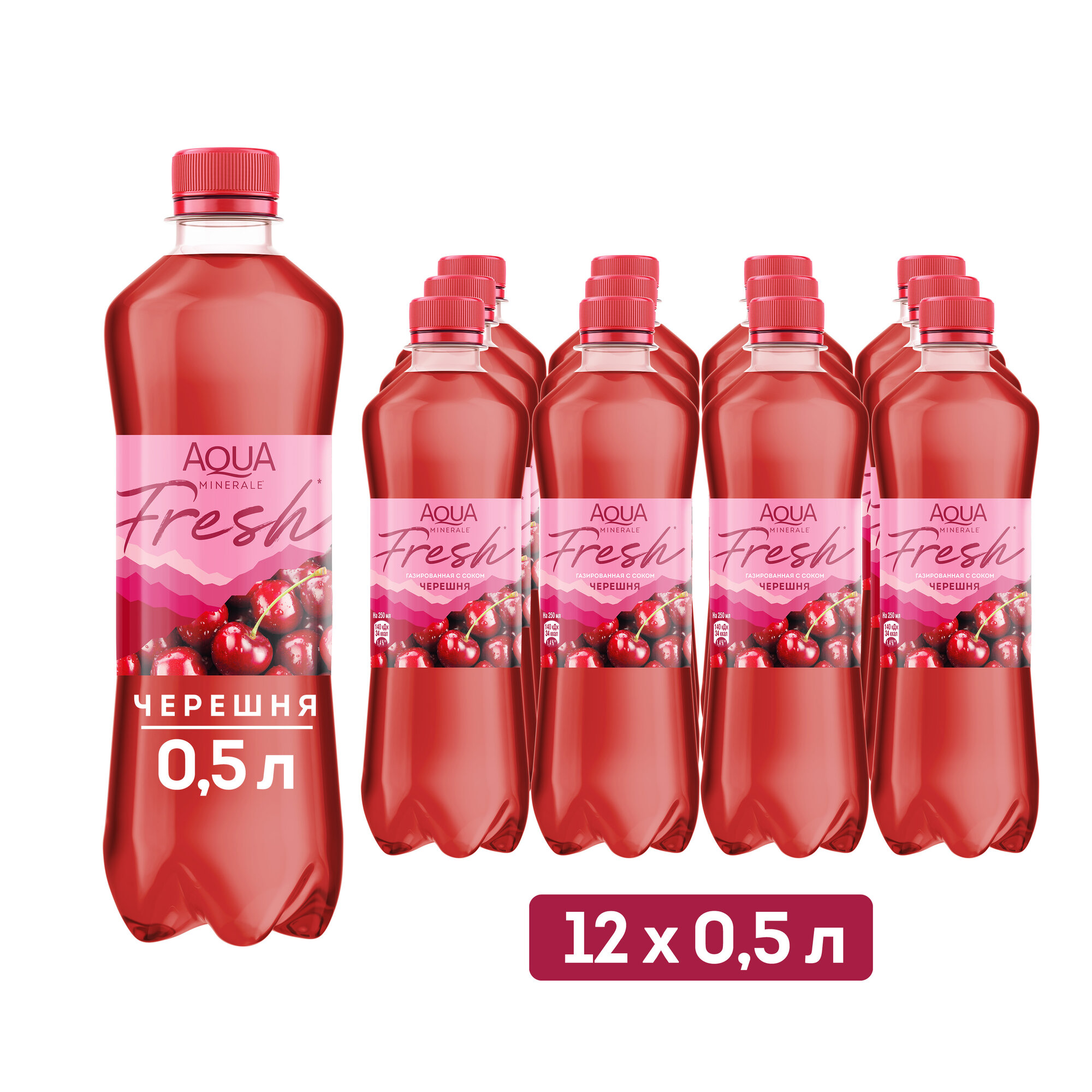 Вода питьевая Аква Минерале газированная с соком Черешня, ПЭТ, 12 шт. по 0.5 л