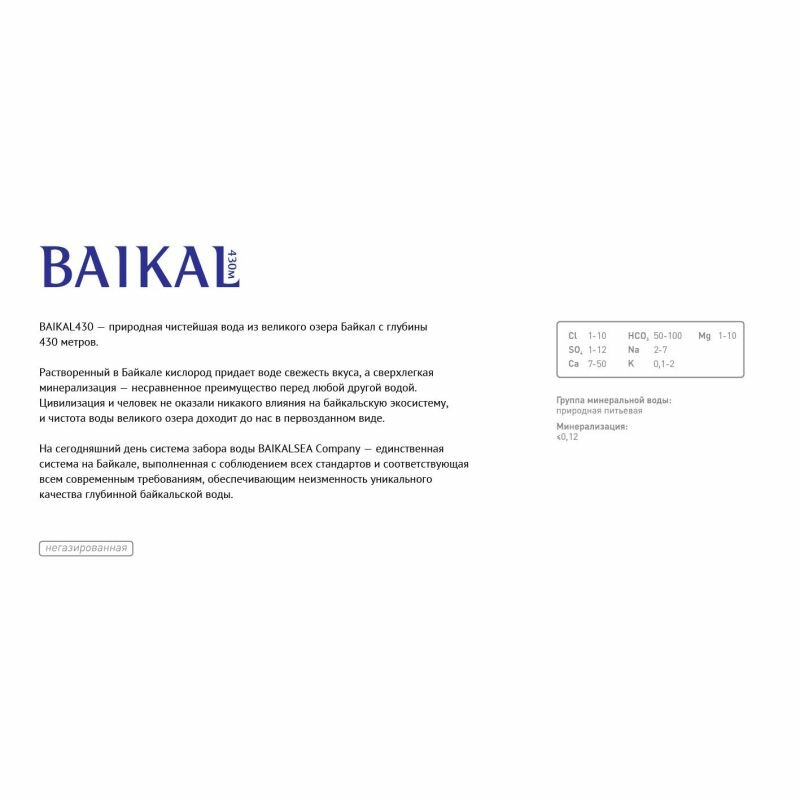 BAIKAL430 Байкальская глубинная вода, негаз., 0,45 л., 12 шт.