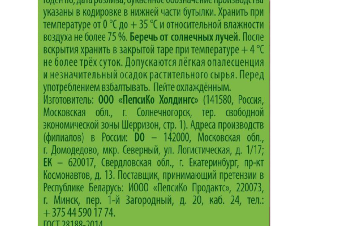 | Упаковка | пластиковая бутылка |