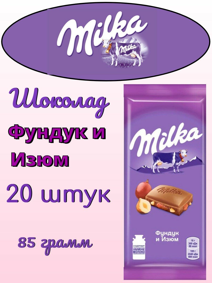 Купить Шоколад MILKA (милка) молочный начинка фундук, изюм 85 г