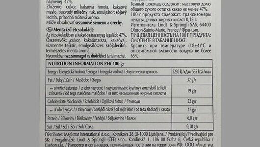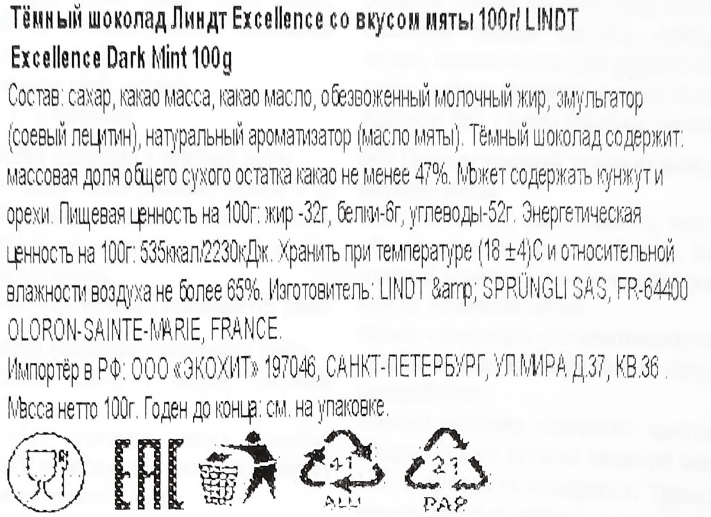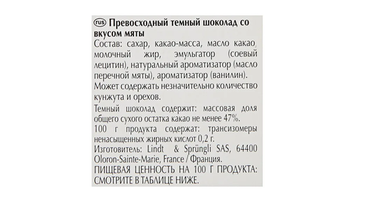 Шоколад LINDT темный с экстрактом мяты, 100 гр интересное: