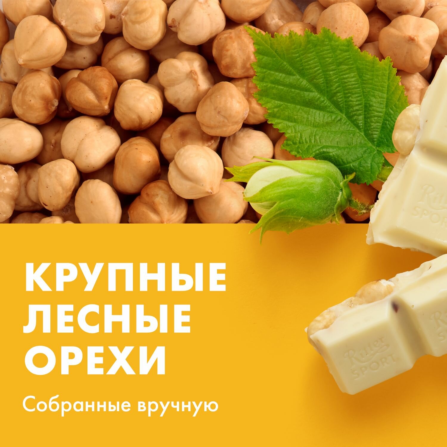 Шоколад RITTER SPORT "Extra Nut", белый, с цельным лесным орехом и хлопьями, 100 г, Германия, 7016