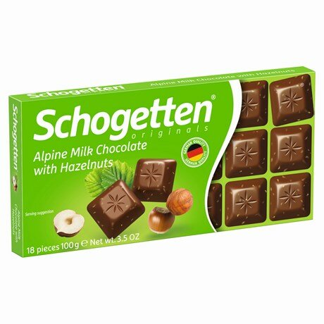 Шоколад Schogetten молочный альпийский с фундуком 100 г (MILK CHOCOLATE WITH HAZELNUTS)