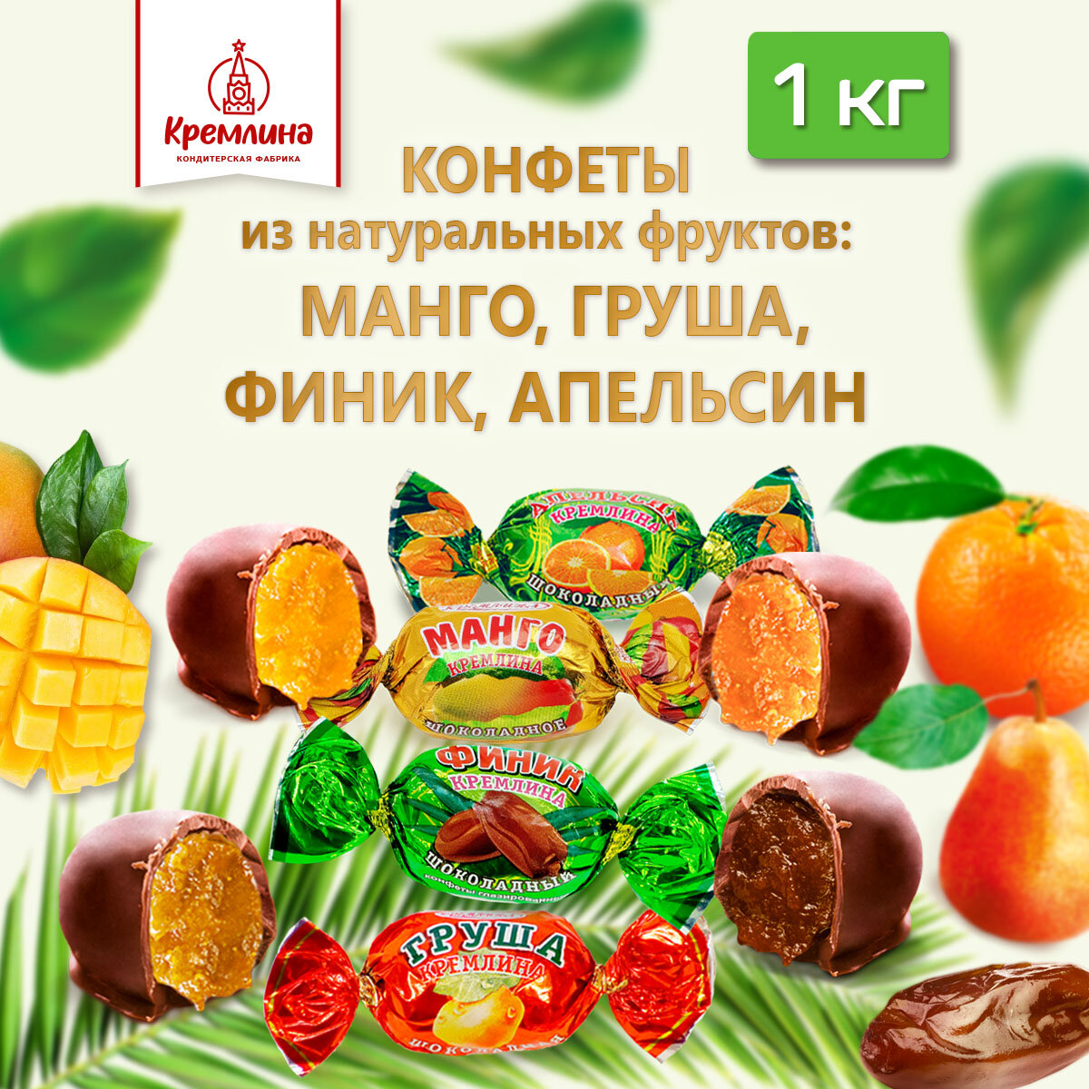 Кремлина Конфеты микс цукаты шоколадные (Ассорти конфет Манго, Апельсин, Финик, Груша), 1кг