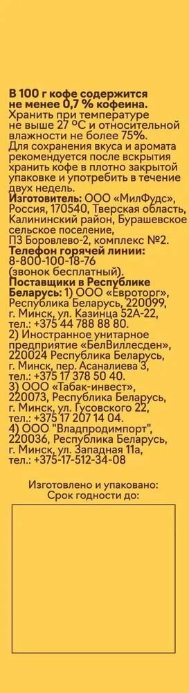 | Вид зерен | смесь арабики и робусты |