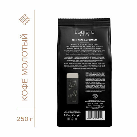 Кофе молотый Egoiste Noir, 250 г, мягкая упаковка