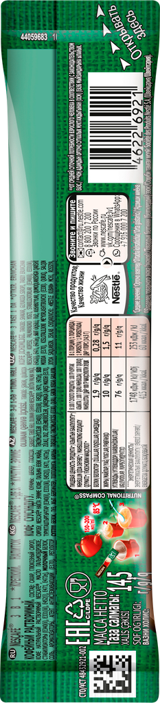 Растворимый кофе Nescafe 3 в 1 крепкий, в стиках, 20 уп., 290 г