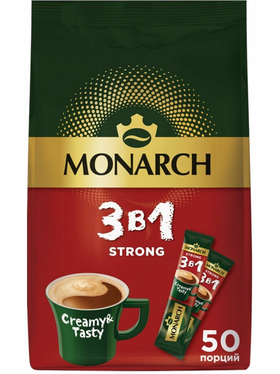 Напиток кофейный растворимый Monarch 3 в 1 Крепкий, в стиках, 50 уп., 650 г