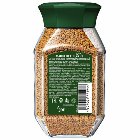 Кофе растворимый Monarch Original сублимированный, стеклянная банка, 270 г