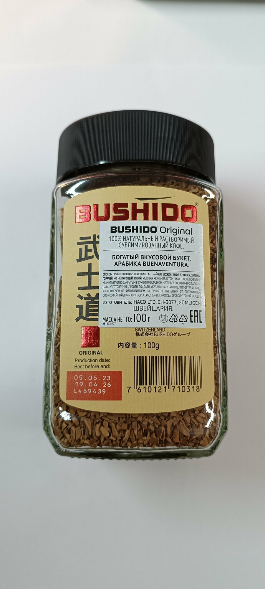 Кофе растворимый Bushido Original, стеклянная банка, 100 г