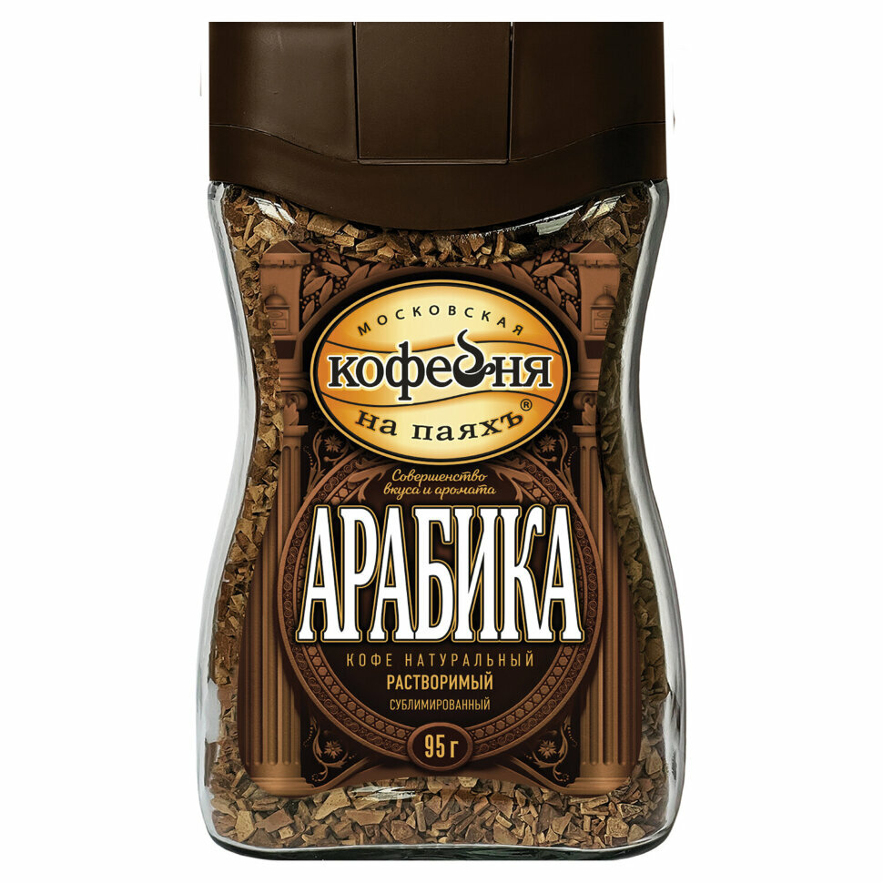 Кофе растворимый московская кофейня на паяхъ "Арабика", сублимированный, 95 г, стеклянная банка В комплекте: 1шт.