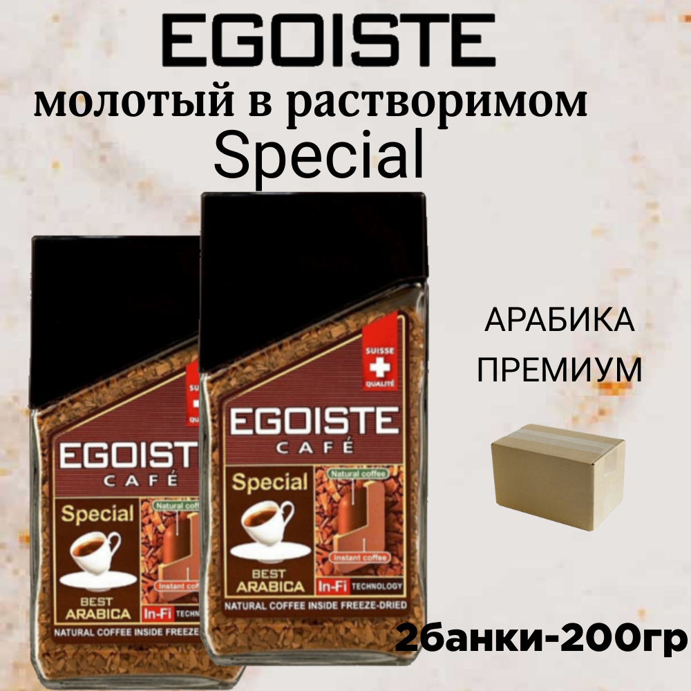 Кофе растворимый Egoiste Special сублимированный с молотым кофе, стеклянная банка, 2 уп. по 100 г