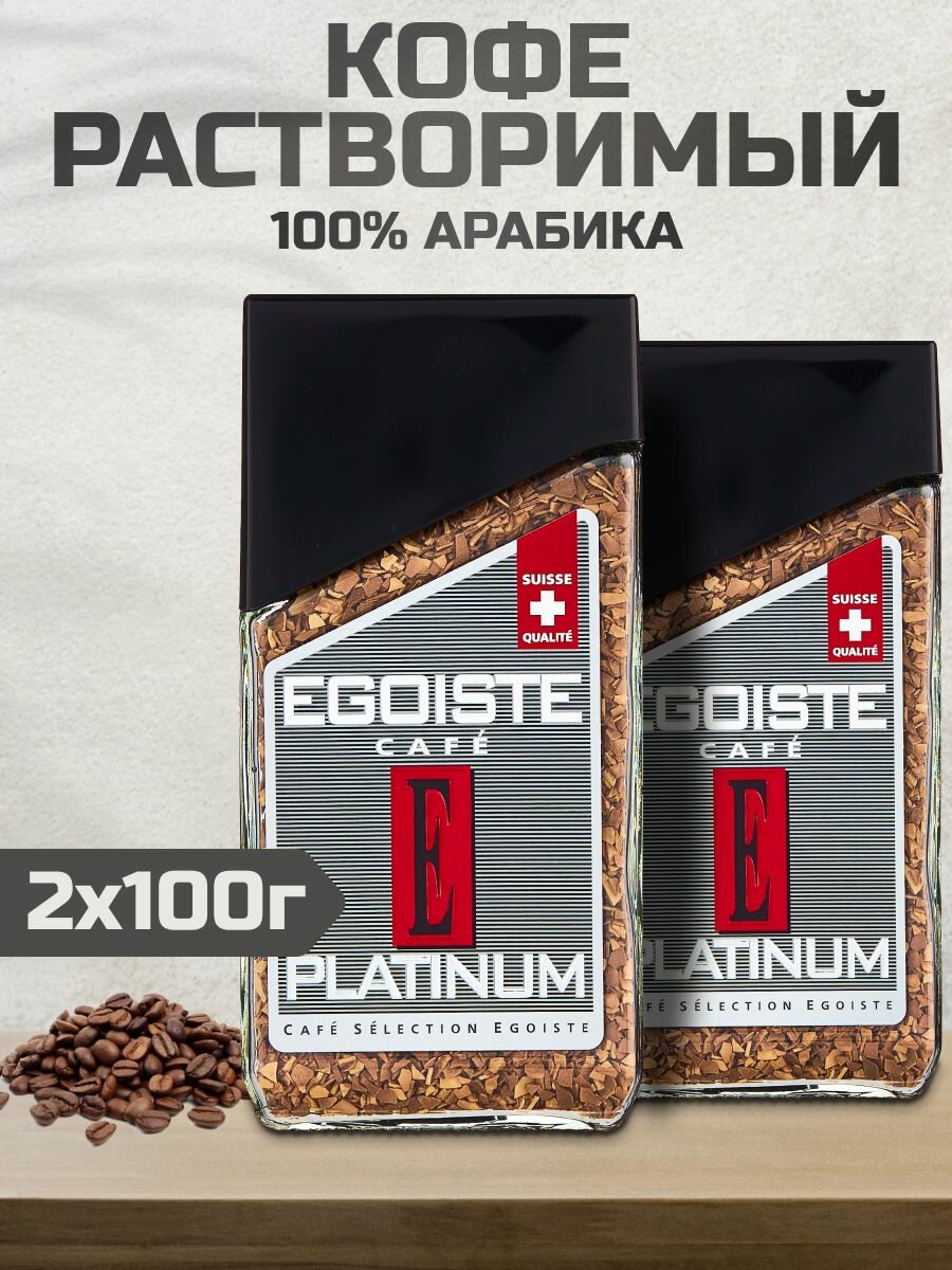 Кофе растворимый Egoiste Platinum сублимированный, стеклянная банка, 2 уп. по 100 г