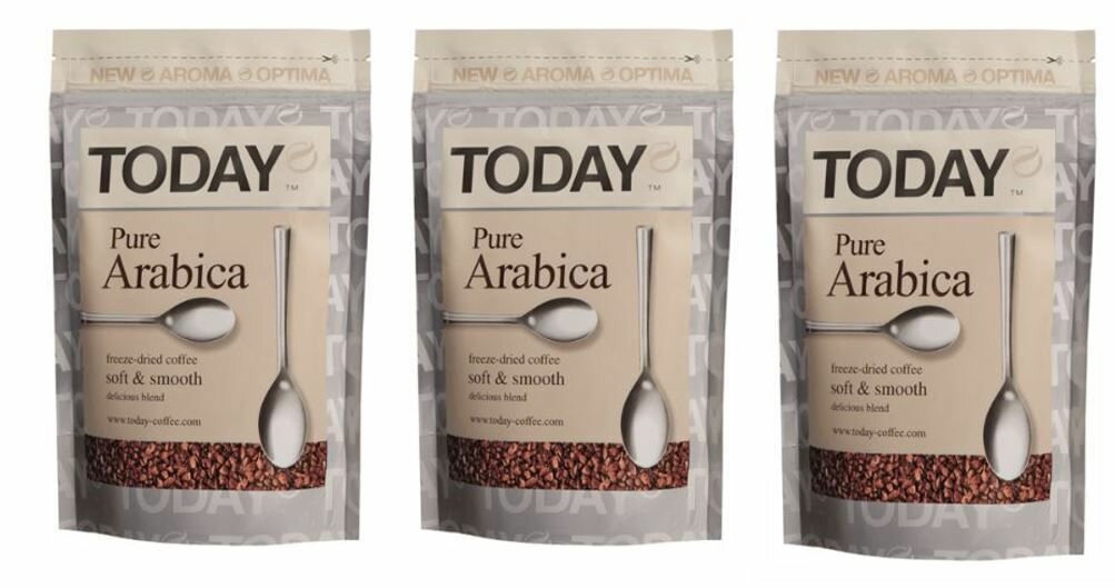 Купить Кофе Тудэй Пюр Арабика набор 3 шт *75 гр (Today Pure Arabica) натуральный растворимый сублимированный мягкая упаковка ZIP-застёжка/Россия/