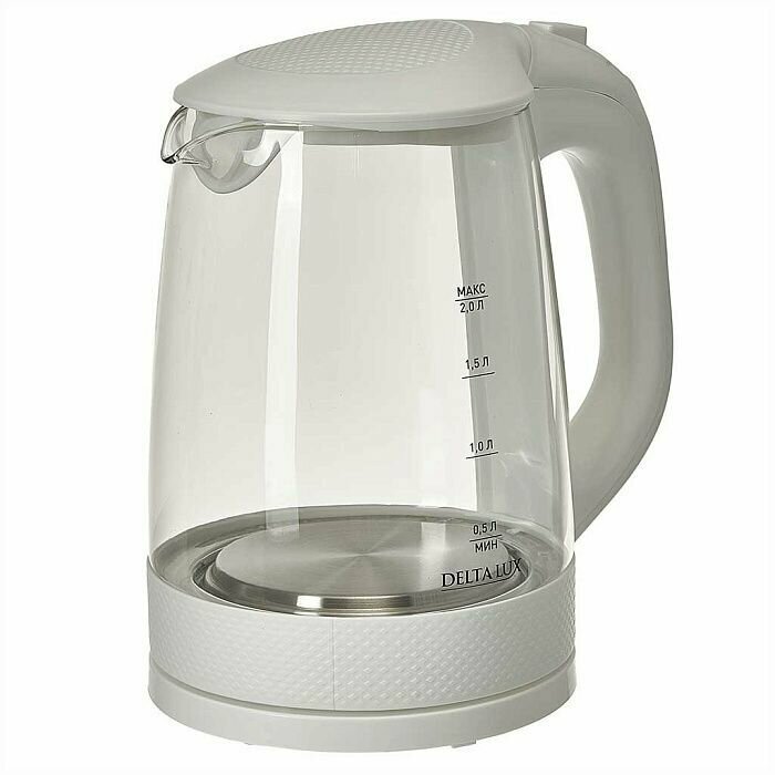 Электрочайник DELTA LUX DL-1058W корпус из жаропр. стекла, белый: мощность 2200 Вт, объем 2 литра