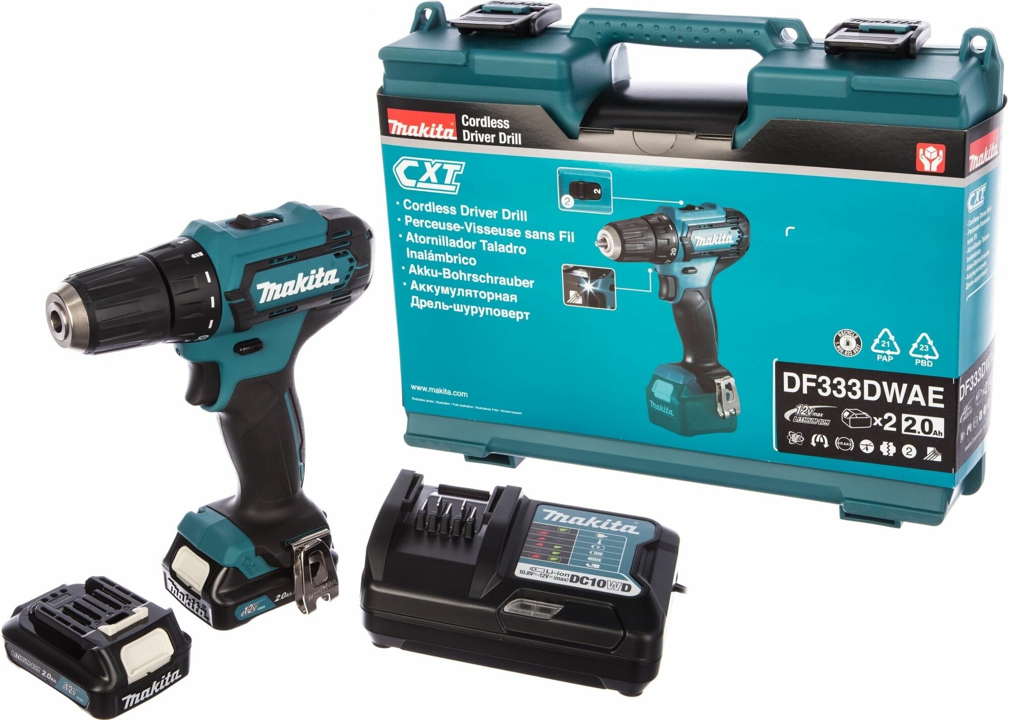 Аккумуляторная дрель-шуруповерт Makita DF333DWAE, с 2 АКБ 2 Ач и ЗУ, в кейсе