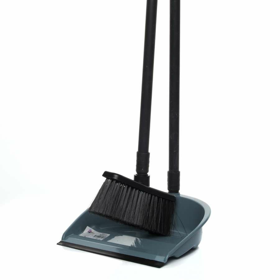 Совок + щетка, пластик, металл, 2 ручки, длина 78см, "Ленивка" черного цвета
