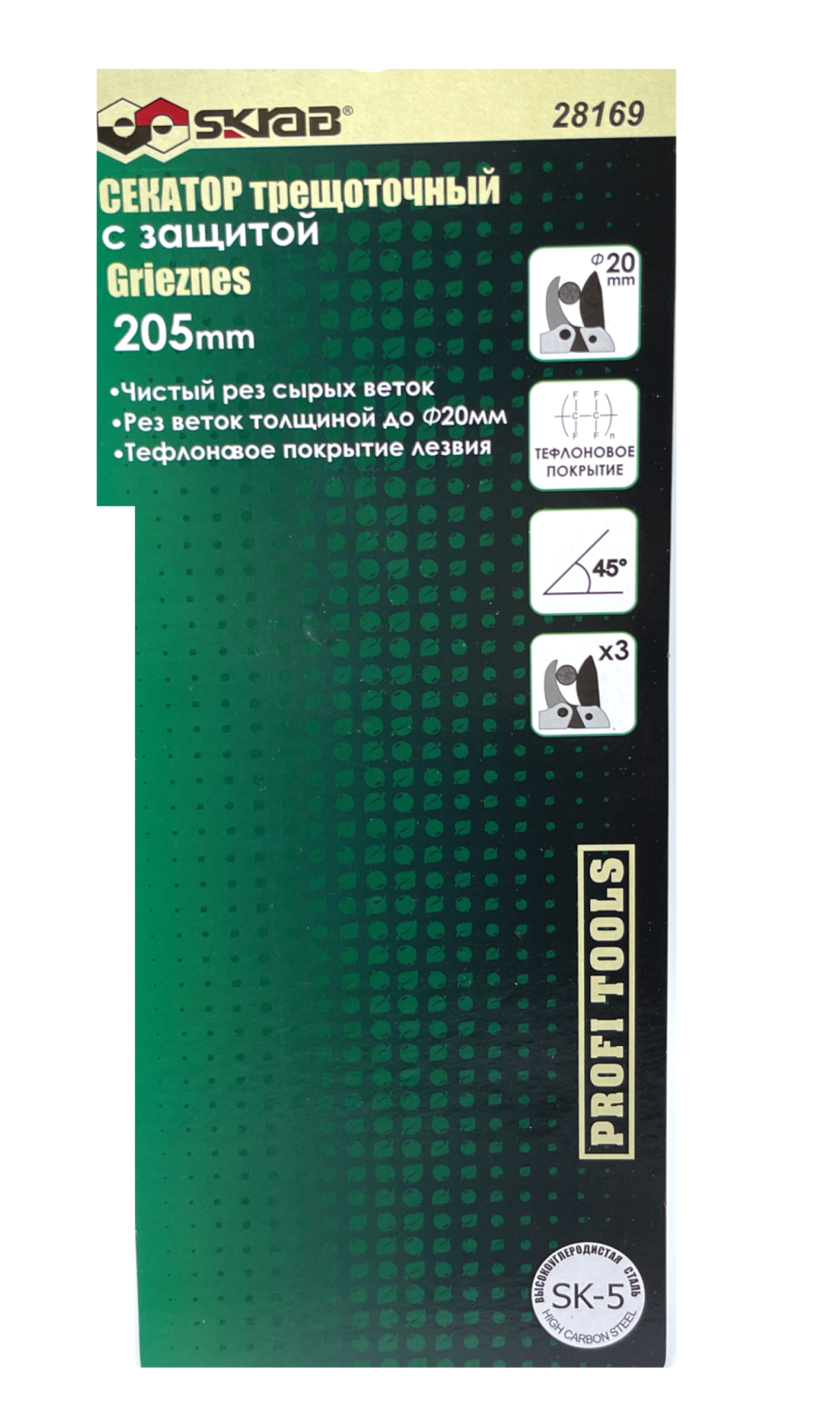 Секатор садовый 205мм трещоточный с защитой спонж SK5 Skrab 28169