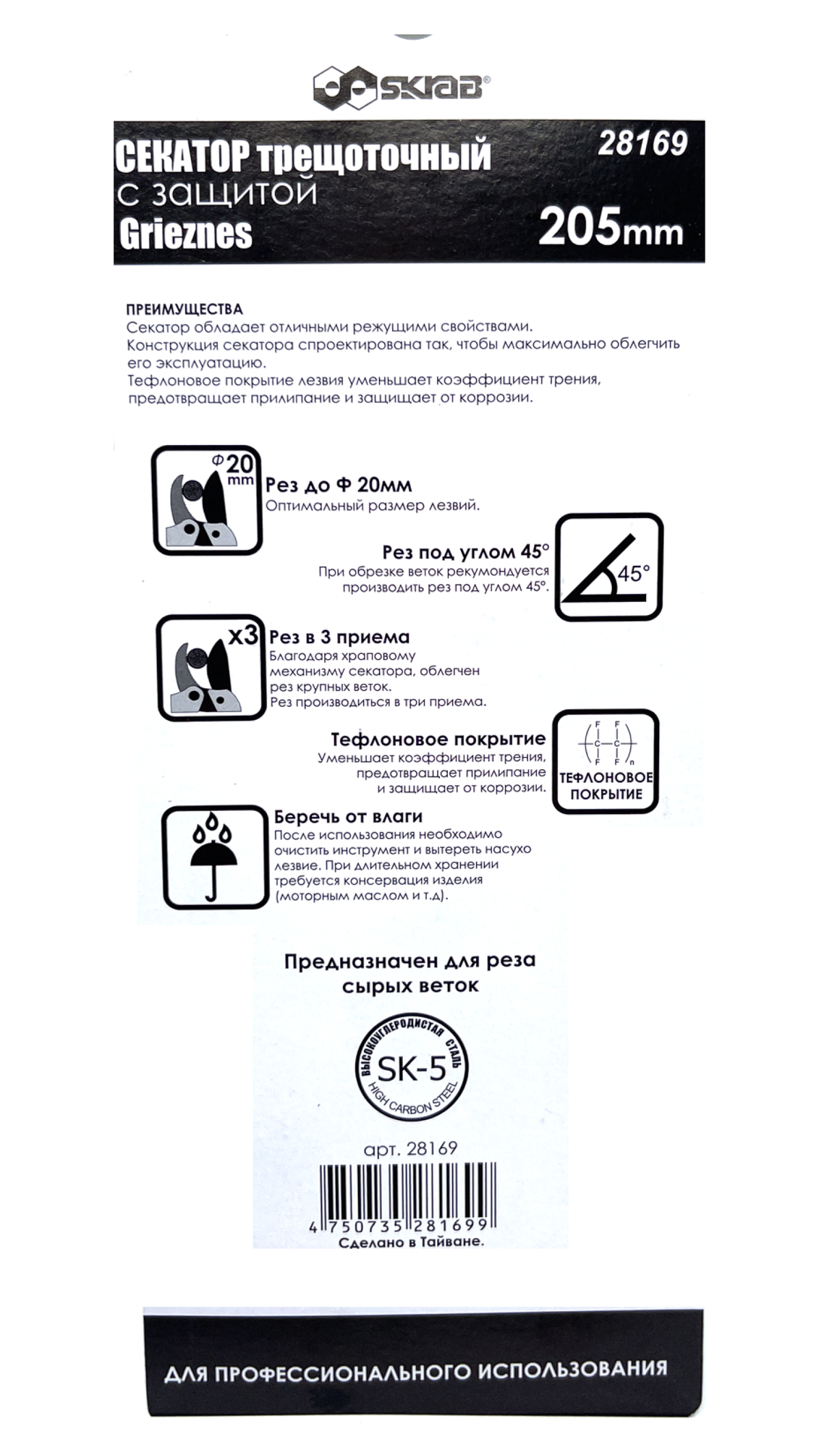 Секатор садовый с защитой, профессиональный, 205 мм. интересное: