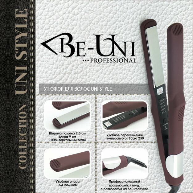 Утюжок для укладки волос Be-Uni Titan Pro UNI STYLE с зеркальным титановым покрытием