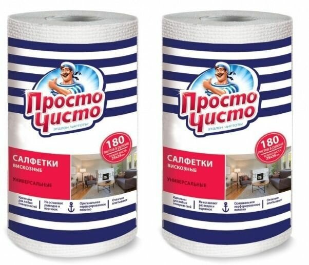 Салфетки в рулоне вискозные, просто чисто, 180 шт, 2 уп