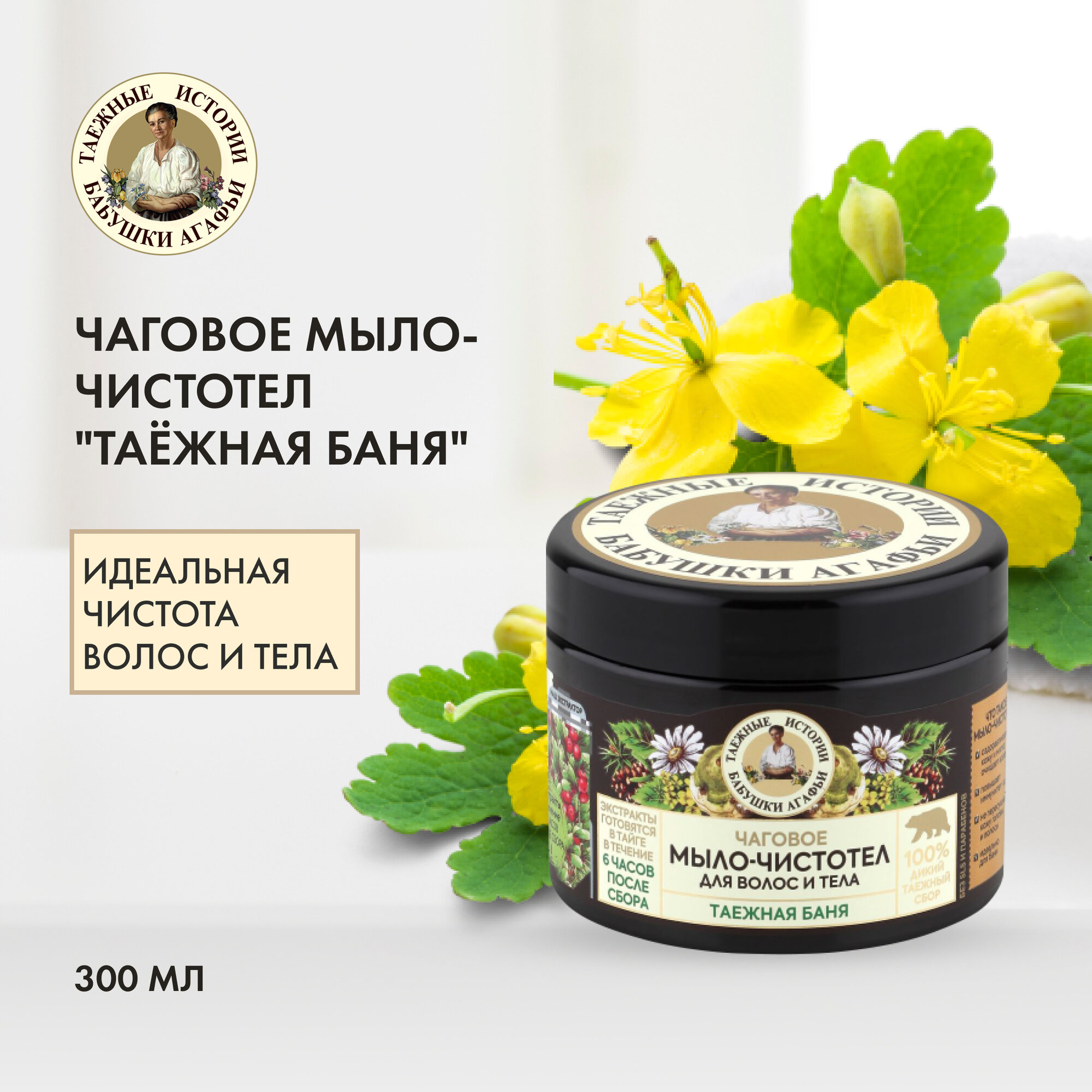 Рецепты бабушки агафьи Таежные истории Чаговое мыло-чистотел для волос и тела Таежная баня, 300 мл, Рецепты бабушки Агафьи