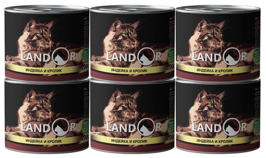 Купить Корм влажный для взрослых кошек Landor индейка с кроликом 200гр х 6шт.
