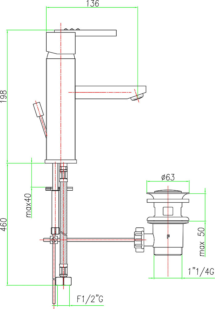 | Длина излива | 136 мм |