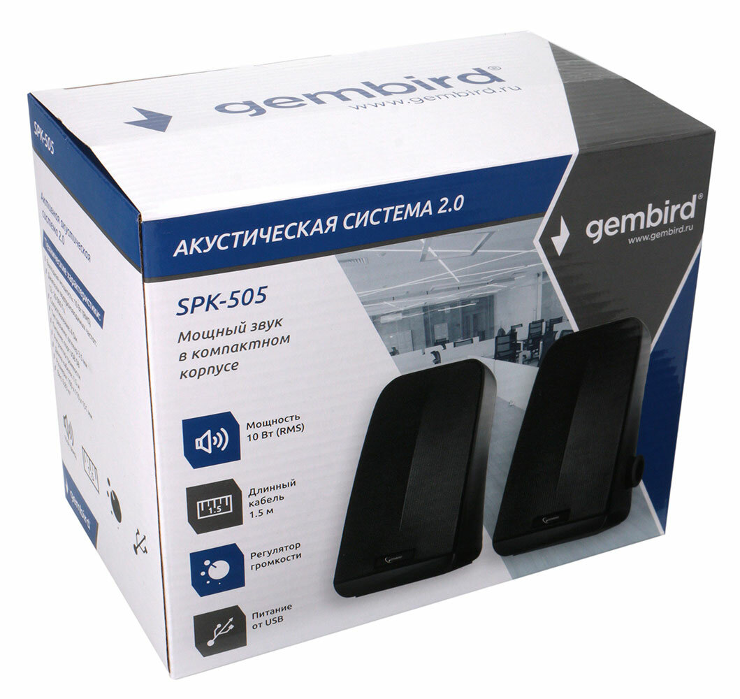 Колонки Gembird SPK-505 2.0, черный, 10 Вт, регулятор громкости, USB-питание