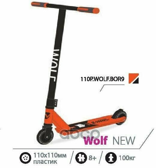 Самокат 2-Х Колесный 110 Мм Трюковый Детский Wolf Алюминиевый Не Складной 100 Кг Оранжевый Novatrack 110P.wolf.bor9 NOVATRACK...
